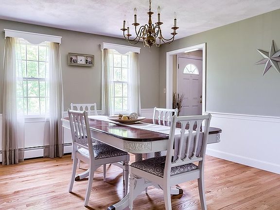 Over size cape on a nice country lot. Long driveway leads to peaceful knoll setting with meticulously maintained and beautifully landscaped lawn. First floor features cabinet packed fully appliance kitchen, open to large front to back fireplaced living room, Spacious formal dinning room with raised panels, First floor office/den, first floor spacious bedroom, updated half bath, and very large four season sunroom . Upstairs offers three additional bedrooms, and an updated full bath. Walkout basement features finished heated family room, half bath, and laundry room. Imagine sitting on your composite deck over looking the beautiful and private back yard.
