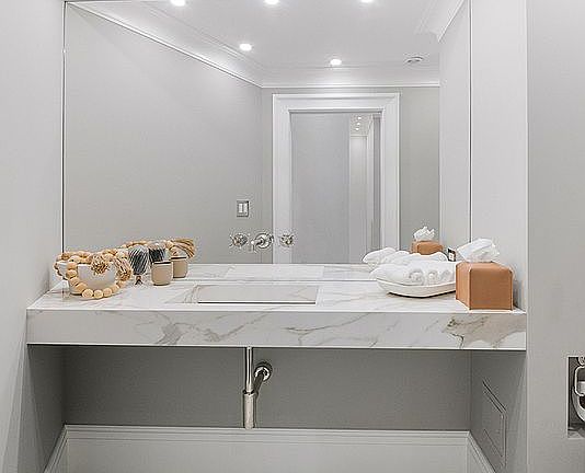 3.5 baths with full-height slab walls (no grout lines)