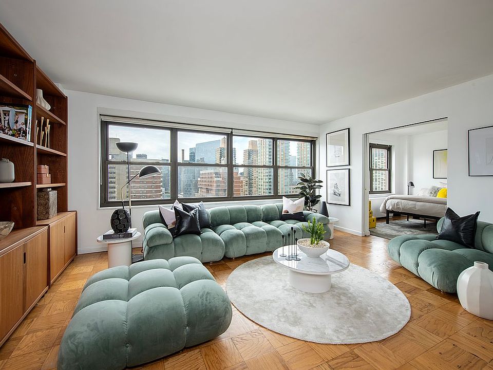 Welcome to Residence 24D — a radiant junior one-bedroom soaring above the city in Lincoln Towers.