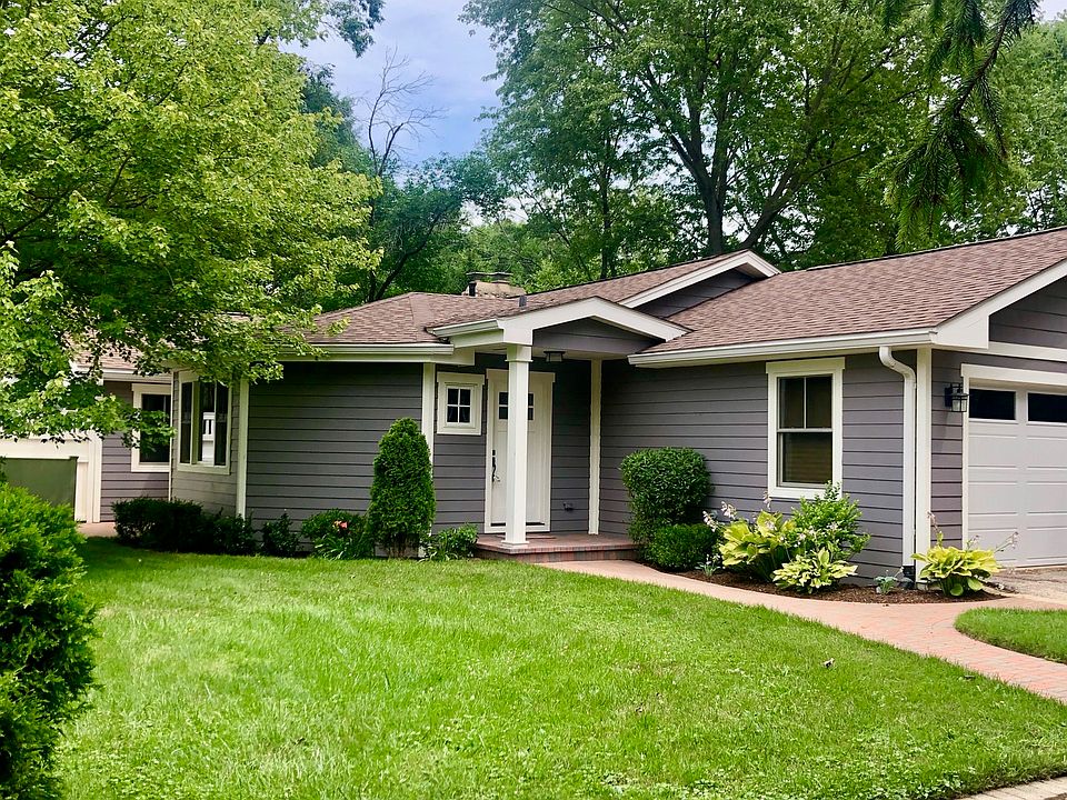 RARE opportunity to live in a COMPLETELY REBUILT AND REDESIGNED Lake Forest home in pristine condition! Great location, close to 41, tollway and train. One of a kind, easy living home has been re-thought and re-built FROM THE FOUNDATION UP for today's lifestyle. New floors, windows, walls, ceilings, siding, patios, appliances, mechanicals- completely gutted and re-built in 2018 with modern open plan one floor living. Generous layout with great flow, hardwood floors, high ceilings and 2 large brick courtyards for outdoor entertaining! The bright, cheery kitchen/family room features a Huge Quartz Island with seating for six, fireplace and sliders to private back patio. Elegant dining room with french door to another private enclosed patio- perfect for entertaining! Primary bedroom in SEPARATE WING with large walk in closet and french doors opening to back patio. One additional en suite bedroom and two more sharing a hall bath bring the total to 4 bd, 3.5 baths. ALL NEW EVERYTHING designed with timeless character!