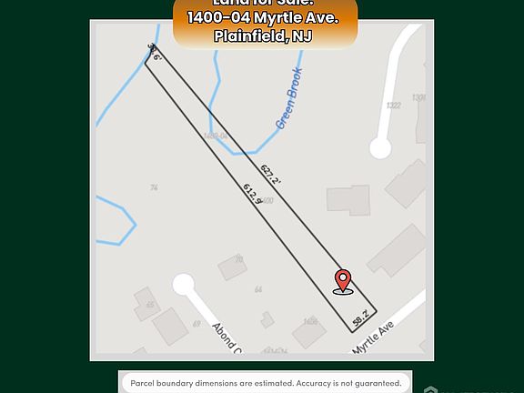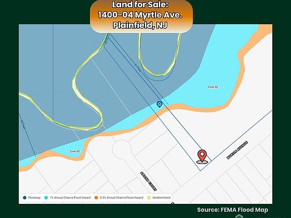 Bring your imagination and an architect to this large irregular lot in the R-2 residential zone of the Queen City Plainfield, NJ. Measuring at just over an acre, this street level property flows down to the bends of the Green Brook. Bulk of buildable land sits well above the Brook. Located near bus stops, NJ Transit trains and nearby shopping, the location can't be beat. Cape Cod home on property is 4 beds, 1.5 bath with basement is unmaintained - AS IS. Priced to move! All utilities: gas, water, sewer and electric already run to property. Start dreaming today!