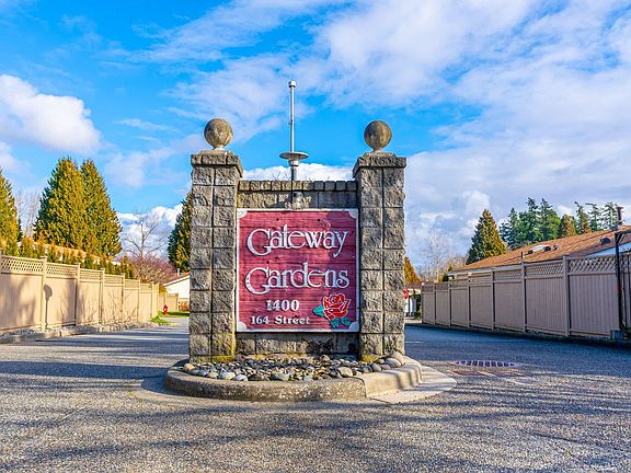 GATEWAY GARDENS: 2 bedroom, 2 full bathroom, rancher on it's own bare land strata lot in gated 55+ age restricted community, with a quiet, prime location within the complex, backing onto the visitor parking and adjacent to club house. This home has been partially renovated- in 2017 in the areas of : kitchen , appliances, LED lighting, cabinets, countertops, etc.; flooring & plumbing pipes, 5 skylights, gas fireplace, dining room chandelier, extended patio awning with remote control; built in vacuum and many others.