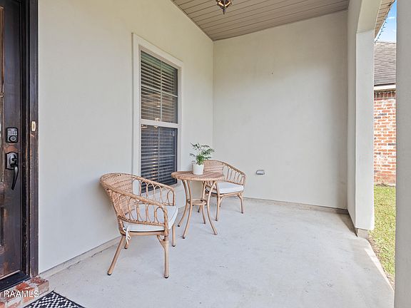 This adorable, custom built home is move in ready! The front door opens into a large open living area with a fireplace and there are high ceilings, wood floors and tall windows that let in natural light, throughout the home. The kitchen has granite counters, an island, stainless appliances that stay and the cabinets are beautiful. The primary bedroom has a walk in closet and the primary bathroom has a jetted tub, a separate shower and double sinks. The backyard has an extra large covered patio and there is a cute front porch. The refrigerator, security system, all window treatments and a custom generator all stay. Home has never flooded and flood insurance is not required.