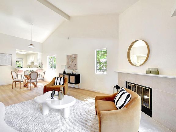 Welcome to this beautifully upgraded top-floor end-unit condo. Boasting soaring vaulted ceilings, this home exudes a spacious, airy feel that is enhanced by an open-concept living room. The entire unit has been thoughtfully updated with new luxury vinyl plank flooring, fresh baseboards, newly painted ceilings, and a modern fireplace surround. The bathrooms have been updated with a new vanities, mirrors, light fixtures. The kitchen offers new quartz countertops and a brand-new refrigerator. This ideal floor plan includes two bedrooms and two bathrooms, with the master suite offering a bright, spacious retreat. The master bathroom boasts a dual-sink vanity for added convenience. Additional features include an in-unit laundry closet and abundant storage space. Step out onto to your private balcony, perfect for relaxing. This gated community offers a wealth of amenities, including a swimming pool, spa, clubhouse, and ample guest parking, plus well-maintained green belts. The HOA has a healthy financial status, covering essential services such as earthquake insurance, water, garbage, sewer, and maintenance of common areas. Situated in a prime location in the heart of Santa Clara, this condo is ideal for commuters and is conveniently close to shopping malls, plazas, parks, and schools.