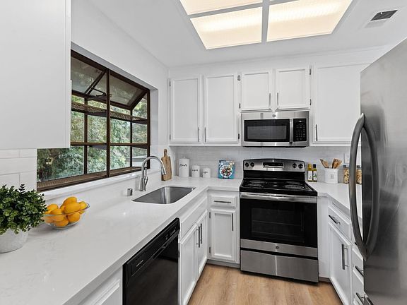 Don't miss this fantastic opportunity for a move-in ready condo located in the heart of Santa Clara. This top-level residence features an open floor plan boasting two generous bedrooms and two full baths. Enjoy the allure of vaulted ceilings, freshly painted interiors, and new carpet throughout. The kitchen shines with new quartz counters and is seamlessly connected to the spacious living room highlighted by a cozy fireplace. This home also offers new LVP Flooring in the kitchen and bathrooms, along with an abundance of natural light flooding the space. Convenience meets comfort with an in-unit washer/dryer. Situated centrally near major tech hubs and close to an array of dining, shopping, and public transport options.