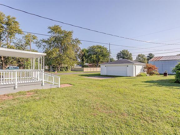 Great starter home sits on a nice size corner lot and has an oversized 2 car detached garage with built in oil change bay- a mechanic's dream! Recently remodeled with new kitchen cabinets, countertops and sink. Kitchen has wainscoting and tiled backsplash. All flooring replaced throughout. Dining room leads out to the covered back porch, great for morning coffee.. Front porch is covered and has new concrete. Pella windows include some tilt ins. New plumbing 2024. Seller has done occupancy inspection.