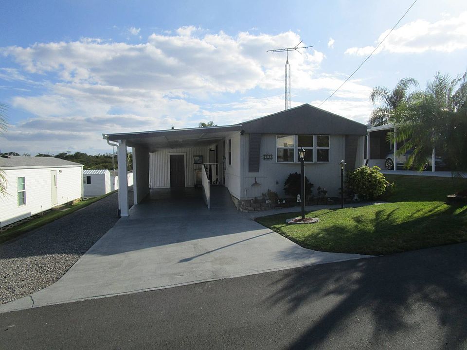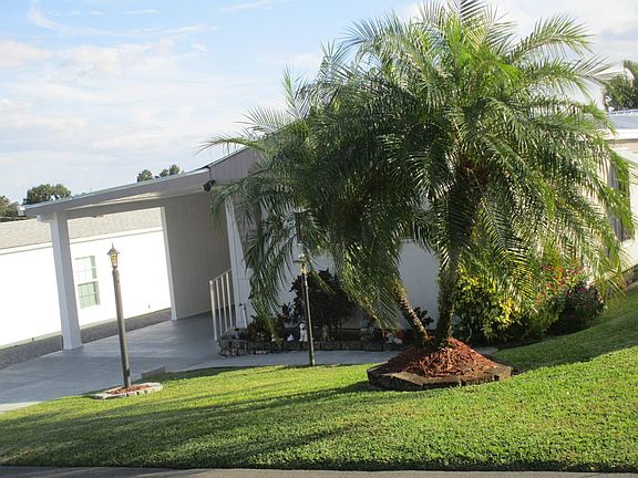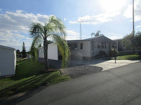 Step inside this meticulously cared-for single-wide home that truly shines with pride of ownership! This charming 14x56 residence offers 2 bedrooms and 2 bathrooms and features a newer metal roof with storm awnings on the windows for added protection and peace of mind. The manicured yard is picture-perfect, boasting lush green grass, palm trees, and neatly trimmed shrubs that create wonderful curb appeal. Although the home is an older model, it has been lovingly updated and maintained far beyond what most others in the community have achieved. Inside, you'll find a bright and inviting kitchen with newer appliances, including a refrigerator with ice maker and a garbage disposal-a thoughtful added convenience. The handmade kitchen cabinets are outstanding and beautiful! The true WOW factor of this property is the mother-in-law suite, a beautifully added living space accessible from the main home. The suite features a spacious bedroom, two closets, and a private bathroom with a shower, along with its own front and rear entrances-ideal for guests, family, or a private retreat. At the rear of the property, you'll find an extra-large shed with loft storage, complete with double entry doors-large enough to accommodate a golf cart or your favorite hobby equipment. Offered at just $69,900, this home combines affordability, comfort, and exceptional upkeep-a rare find in today's market! Low lot rent at only $200 per month, which includes trash, water, and sewer.