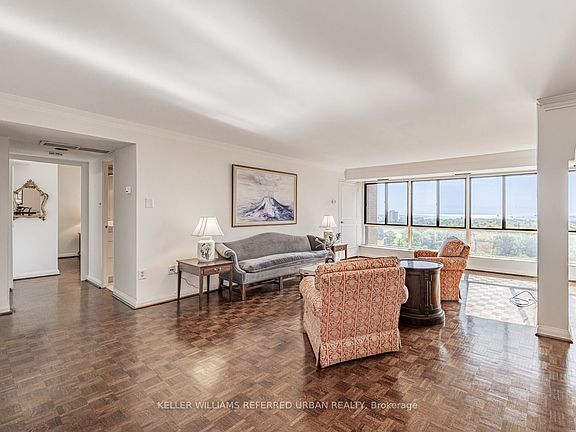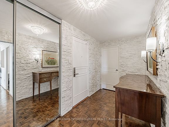 One of the most coveted, renovated suites at The Fairways voted Condo of the Year in 2021! Ideally located on the Toronto border, this residence offers unobstructed CN Tower and lake views. A golfers paradise adjacent to the Toronto Golf Club and on the grounds of Lake View Golf Course.This large suite includes side-by-side parking for two vehicles right beside the elevator, complete with an EV charging station and private locker. Inside, the gourmet kitchen showcases 4-inch quartz countertops, soft-close cabinetry, and premium stainless-steel appliances. The suite spans an impressive 1,950 sq. ft. of refined living space, featuring three renovated spa-inspired bathrooms and three spacious bedrooms, all overlooking two golf courses for unmatched privacy and serene views.A standout opportunity is the ability to add an additional powder room in the front storage room an exceptional value-add that enhances both functionality and resale appeal. Enjoy remarkably low condo fees for a suite of this scale, with all utilities, internet, and cable TV included.Residents indulge in a true resort-style lifestyle, complete with an outdoor pool, tennis courts, fully equipped gym, library, woodworking studio, card room, and the exclusive McMaster House the perfect venue to host your gatherings in style.