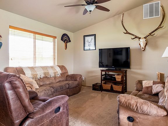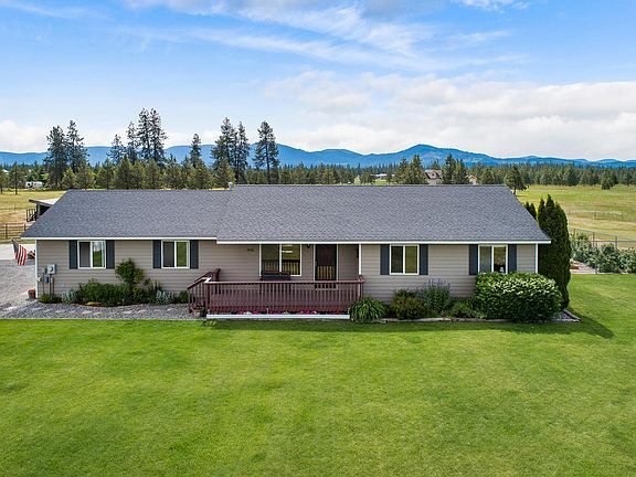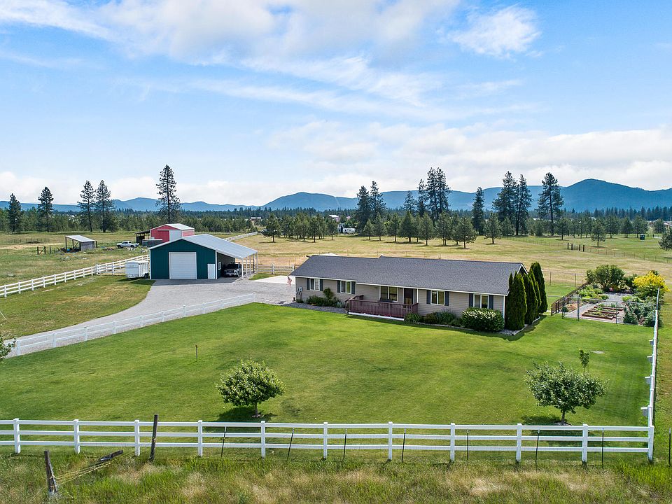 Rancher & SHOP on 5+ Acres! This property is horse ready & located on a quiet road with magnificent views from all directions. Fenced & cross-fenced for horses & dogs, it has open pasture, fruit trees, sprinkler system for lawn & garden areas, a cement pad for a basketball hoop. The 30x40 shop has a sliding door in the back so it can be used as a barn or open storage structure. The home is a 2208SF rancher with 4 BD and 3 BA, newer appliances in the kitchen, the roof and exterior paint were done in 2014. The upper floor includes a mstr suite with a walk-in closet, guest bedroom/ bathroom, office area, & open kitchen/living room with vaulted ceiling. The lower floor has two more bedrooms, laundry, bathroom, propane fireplace & 2 family rooms. Wired for a generator, & includes the hot tub!