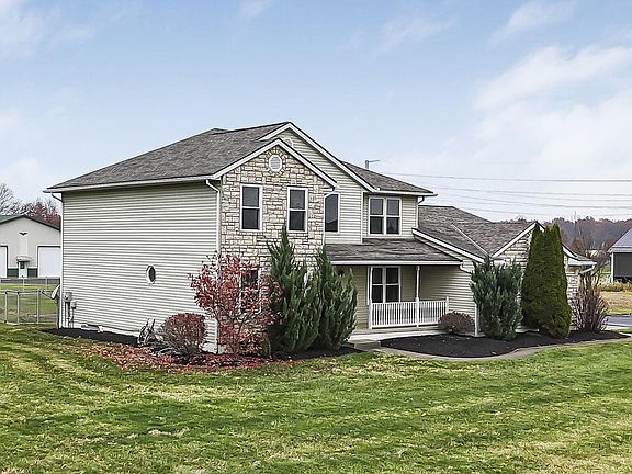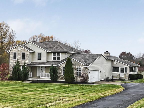 Experience peaceful country living on 5 acres with a home offering nearly 3,000 sq ft of updated living space. A two-story foyer welcomes you inside, leading to a main-level owner's suite with its own private bath. The kitchen features stainless steel appliances, solid-surface counters, a breakfast bar, and a walk-in pantry, and it opens comfortably into the great room showcasing a stone woodburning fireplace and walkout to the three-seasons room. The first floor also includes a family room, home office, convenient laundry area, and half bath.