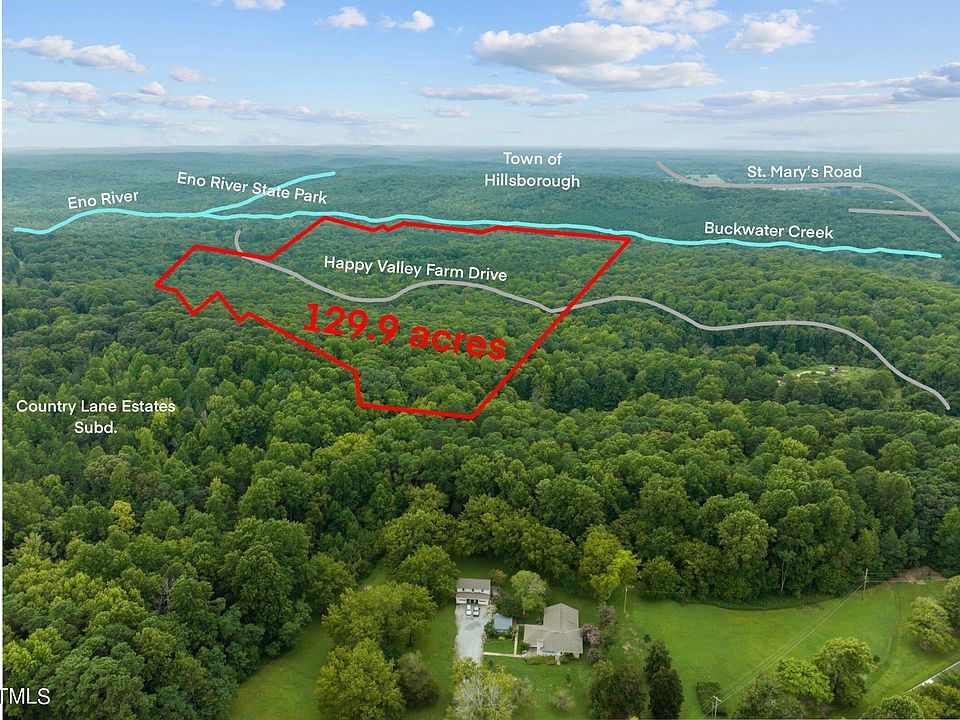 Beautiful pristine wooded 130 acre tract along Buckwater Creek between Hillsborough and Durham is full of possibilities. Develop into large lot subdivision, or build your dream estate, family compound, make this your private preserve, equestrian community, and more. Mature hardwoods, some pine forest, with rolling topography, a meandering stream, and remnants of an old homestead, this is a gorgeous property and truly a unique opportunity. Recent soil report shows great soils for septics. Pond(s) possible. Just off Pleasant Green Road near intersection with St. Mary's Rd. Across Buckwater Creek from state land and Eno River State Park. Nearby estate lot homes range from $800K to $1.5M+. Current zoning is Orange County AR with L-ENO-PW overlay. Access via public or private roads. Just 8 miles to Hillsborough and 10 miles to Duke & Durham.