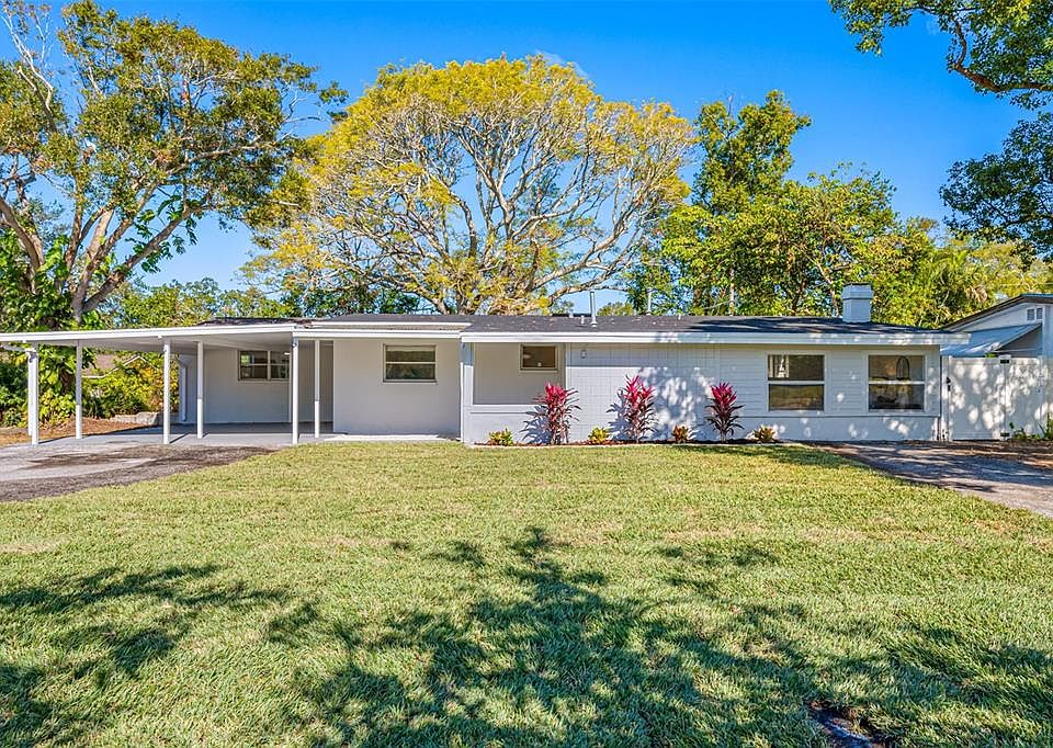 Welcome to your dream retreat—a completely remodeled pool home that blends modern convenience with timeless charm. This solid block construction offers over 1,900 sq. ft. of living space, featuring 3 bedrooms (with the option for a 4th), 2 baths, and an additional enclosed porch with a half bath. The half bath is uniquely designed to share a Jack & Jill-style shower, adding flexibility to the layout. The living room boasts a vaulted ceiling, a cozy gas fireplace, and new vinyl windows that bathe the space in natural light. The brand-new kitchen is a chef's delight with updated cabinets, sink, plumbing, faucet, and a gas stove. Additional updates include a recently updated electric panel box, along with a 2024 roof, AC, and water heater for worry-free living. An inside utility area comes equipped with a new washer and dryer for added convenience. The backyard is your personal oasis, featuring a deep, in-ground concrete pool with diving board dimensions, surrounded by a newly installed white vinyl fence for privacy. With access to the pool from three separate doors, this home is designed for seamless indoor-outdoor living. Set on just under 1/2 an acre, the property offers ample space, including an RV pad perfect for storing a boat or motorhome. The lot is bordered by a peaceful incline and a babbling brook, adding a touch of nature's serenity. Conveniently located in a non-flood zone, this home is just minutes from shopping, restaurants, parks, and the beaches. This home isn't just a place to live—it's a lifestyle waiting to be embraced