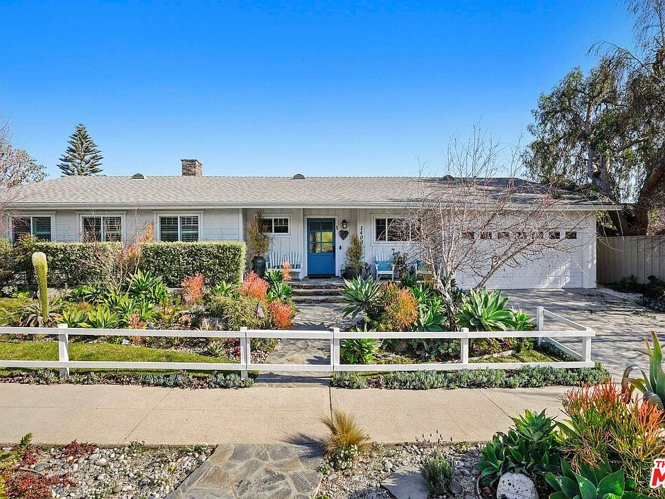 A pristinely designed, single-story California ranch-style retreat, seamlessly blends mid-century modern aesthetics with a refined coastal living ambiance, creating a space that is both elegant and effortlessly comfortable. The current owners have cherished every moment here, filling the home with joy, good vibes, and a sense of community, and now they are ready to pass it on to someone who will love it just as much as they have. Tucked away in the exclusive and highly sought-after Brentwood Polo Fields, 1400 Longworth is more than just a house; it's a home filled with love, warmth, and incredible energy. From the moment you step inside, you are enveloped in an inviting, open atmosphere where floor-to-ceiling sliding glass doors flood the space with natural light and create a seamless connection to the lush outdoors. The Brazilian hardwood floors gleam underfoot, adding warmth and richness, while the fireplace in the living room sets the perfect tone for intimate gatherings. The expansive, open-concept layout allows the living, dining, and kitchen areas to flow effortlessly together, making this home an entertainer's dream while still feeling casual, relaxed, and full of heart. The kitchen is a stunning showpiece, featuring top-of-the-line appliances, sleek cabinetry, and a striking retro tile backsplash, a perfect balance of modern convenience and timeless style. A dedicated TV room offers a cozy retreat, while four spacious bedrooms and four beautifully appointed bathrooms provide both privacy and comfort. What truly sets this home apart is its extraordinary backyard; an outdoor oasis designed for both relaxation and unforgettable gatherings. Custom landscaping with rare and handpicked drought tolerant succulents, highlighted by the large reverse osmosis pool with an automatic cover, outdoor BBQ station, and dining space are nestled amid meticulous landscaping, enhancing the tranquility and charm of this stunning retreat. The covered lounge, featuring a private jacuzzi spa, built-in seating, heat lamps, a bar, refrigerator, and an adjoining outdoor shower, offers the ultimate setting for entertaining under the sun or stars. Beyond the home and yard, the converted two-car garage has been transformed into a gym and playroom with ample storage, and behind the home, there is a dedicated space for a vegetable garden with irrigation system, alongside mature fruit trees, including apple, avocado, Meyer lemon, and fig. Adding to its appeal, the home is equipped with owned solar panels, offering energy efficiency and sustainability. The neighborhood itself is just as special as the home, set on flat, child-friendly streets with cul-de-sacs, fostering a true sense of community where neighbors know each other, kids ride bikes, and life moves at a relaxed yet vibrant pace. With homes in the area selling for considerably higher prices, this is an incredible opportunity to own a piece of the Brentwood Polo Fields. Walking distance to Paul Revere Junior High School and just minutes from the Brentwood Country Mart and the boutique shops and restaurants of Montana Avenue, this home offers the perfect balance of peaceful suburban living with effortless city access. Seller will consider selling the furniture separately.