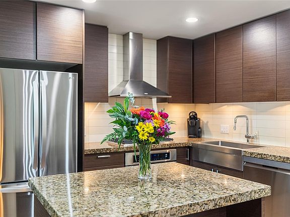 Sunny south-facing balconyNew carpetsGourmet gas rangeGranite countersLarge islandFull-size laundrySpa-like ensuite