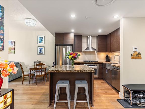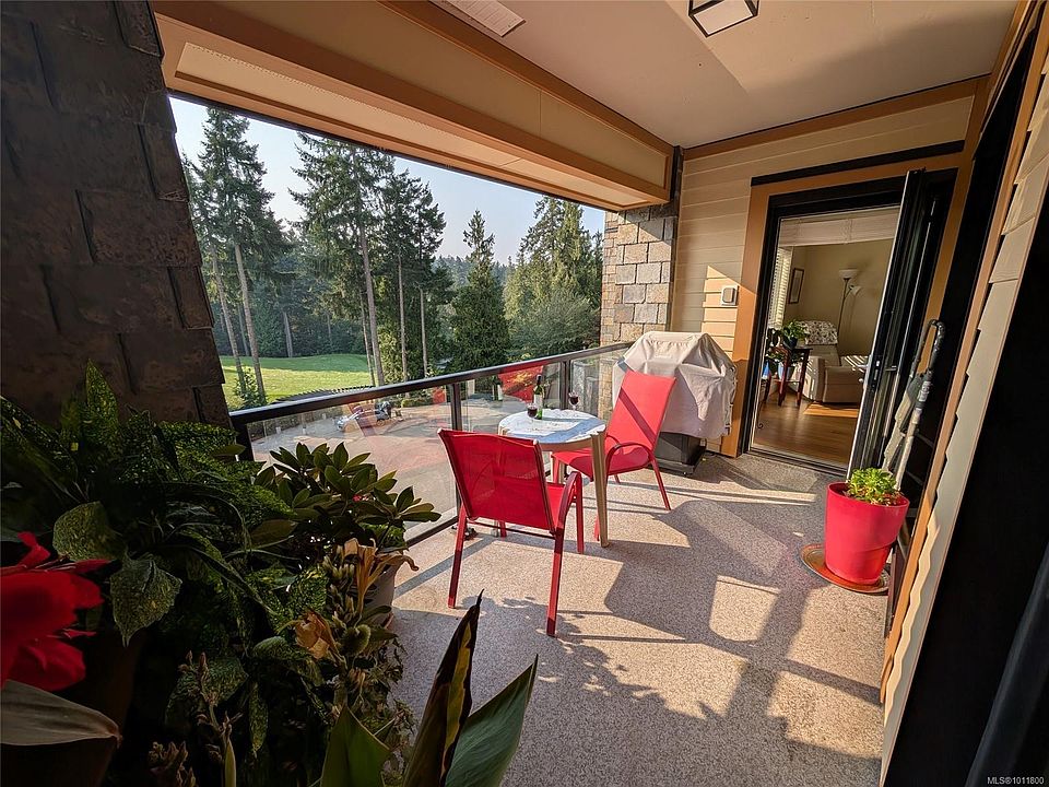 Luxury Resort-Style Condo in Bear Mountain Resort! Bright 2BR/2BA in Finlayson Reach, a steel & concrete, adult-oriented building at the end of a quiet no-thru road in Bear Mountain Resort. Enjoy year-round comfort with efficient heat pump/AC, plus a sunny south-facing balcony—perfect for morning coffee or natural gas BBQs while listening to soothing waterfalls and panoramic pond & golf course views. Upgrades include: new carpets (2025), fridge, dishwasher, washer and dryer (all 2023), gourmet gas range, granite counters, large island, full-size laundry. Spacious primary suite boasts spa-like ensuite with separate shower and tub, double closets, and balcony access. Amenities include gym, theatre, lounge, sauna/steam shower, secure underground parking, storage, car wash. Ultimate pet-friendly living! Walk to spa, salon, liquor store, pool & hot tub recreation center, restaurants, endless trails. Minutes to Costco + easy highway access—live at Bear Mountain Community.