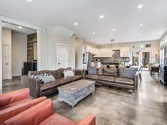 Beautiful custom home in the heart of Bend. Radiant concrete floors on the main level. Large kitchen with Jenn Air appliances, 36'' gas stove/oven. Two sinks in the kitchen. Great open floor plan downstairs for entertaining--opens right up to the beautiful backyard which includes a large paver patio with a pad for a hot tub, a pergola with heater, dimmer lights, and electrical plugs. Large gas fire pit. Fully landscaped and irrigated. Upstairs has four bedrooms and two baths with a large master suite that includes a separate toilet/shower area, beautiful walk-in closet, concrete countertops with integrated concrete sinks, radiant towel drying racks, deep soaker bathtub, second fireplace in the master bedroom, balcony off the master. Driveway accommodates three cars or a small RV and garage access. Water Heater recirculation pump and much more.Super close to the lively and wonderful Galveston corridor--short walk to Drake Park--the surfing waves, outdoor concerts, and downtown.