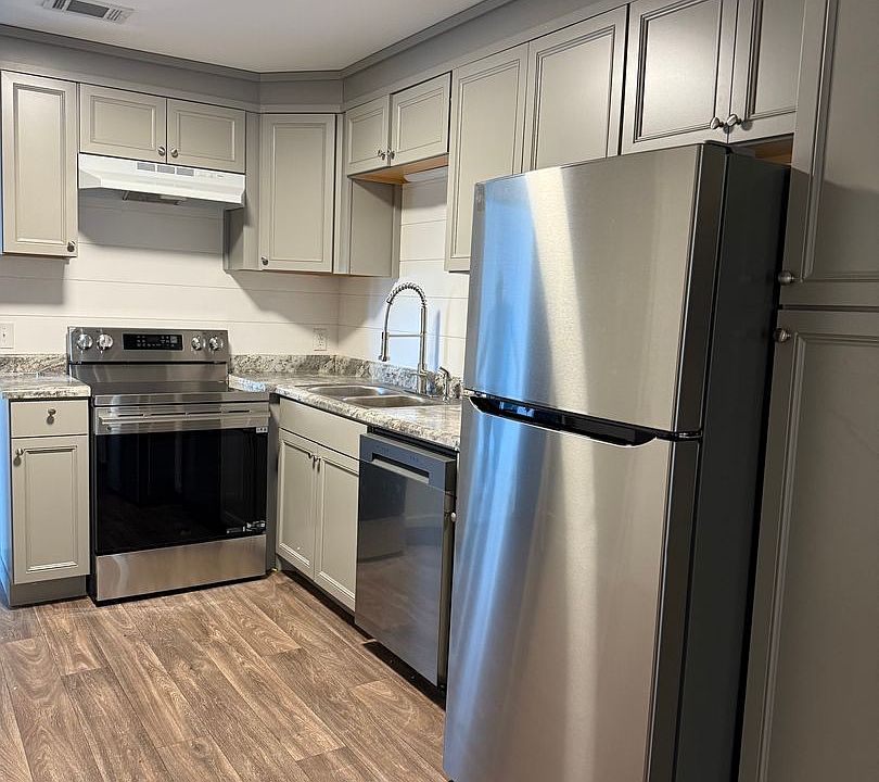 All-new stainless steel appliances: stove, refrigerator, and dishwasher