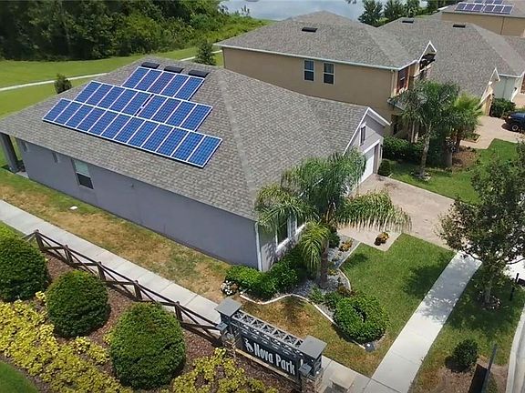 Beautiful Solar powered home located in Nova Park community. Minutes from Lake Nona Shopping, dining, Medical City and quick access to major highways providing convenient travel to popular attractions and entertainment that Central Florida has to offer. Recently installed solar panels brings financial flexibility to you and your family during the highest peaks in electrical usage. This bright, welcoming spacious floor plan features upgrades such as Tiles throughout, Stainless steel appliances, large walking pantry, Quartz kitchen counter tops and island great for gatherings and entertaining guests. Master suite comes with desk/lounging area, a large bathroom and walking closet that wont disappoint. Come see your home today!