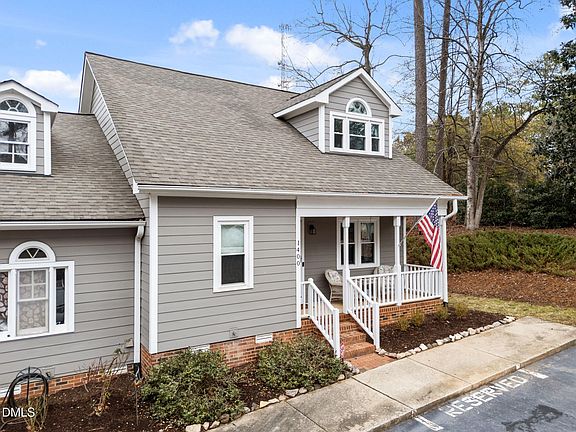 Welcome to 1400 Quarter Point in Raleigh, a beautifully maintained, turnkey, light-filled end-unit townhome offering comfort, thoughtful updates, and easy living in an ideal North Raleigh location. A spacious front porch welcomes you home and provides the perfect place to enjoy morning coffee or unwind in the evening. This 3-bedroom, 2.5-bath home has been meticulously cared for and thoughtfully improved throughout. The gorgeous, updated eat-in kitchen (2023) features custom cabinetry designed to make all your cooking dreams come true, along with a custom banquette that adds both charm and function while maximizing space and light. Across the hall, the dining room feels truly special, with custom molding, wall sconces, and extra windows that create a warm, inviting setting for gatherings and everyday meals. The living room offers an open, airy feel with vaulted ceilings and natural light. French doors lead to an abundantly sized, private screened porch, seamlessly extending the living space outdoors. Hardwood floors throughout the main level elevate the home's warmth and style. The first-floor primary suite provides everyday convenience with an en suite bath, while new carpet on the stairs and upstairs adds comfort to the additional bedrooms. Major updates include roof (2021 with 10-year warranty), fiber cement siding (2022), gutters (2022), HVAC (2017), water heater (2022), most windows replaced (2023), crawlspace insulation and vapor barrier (2022), and attic insulation with solar attic fan (2022). The location couldn't be more ideal, with easy access to I-440 and I-540, North Hills, Crabtree Valley Mall, RDU Airport, and a wide variety of shops and restaurants. This move-in-ready home combines smart updates, a functional layout, and a bright, welcoming atmosphere. This is the kind of home that simply feels right.