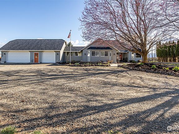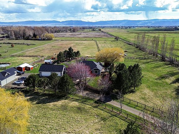 Hobby farmers dream on this 10 acre property! Step inside this 2300+ sqft rambler & be greeted by shining hardwood floors & natural light flooding in. Off the entry a private office & sitting room with views to the north. The living room has vaulted ceilings & natural stone fireplace with pellet stove. The kitchen has granite counters, farm sink that overlooks a garden, & breakfast nook. Down the hall is the master with ensuite & private door to the deck plus 3 additional bedrooms & full bathroom. Outside enjoy fully irrigated cross fenced property, gardens, pond, barn, sheds and chicken coop! The woodshop is insulated with tons of storage and a bar next door! 50yr roof new in 2023. Nothing to do but move in and show it off!