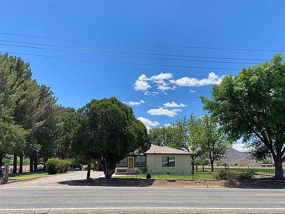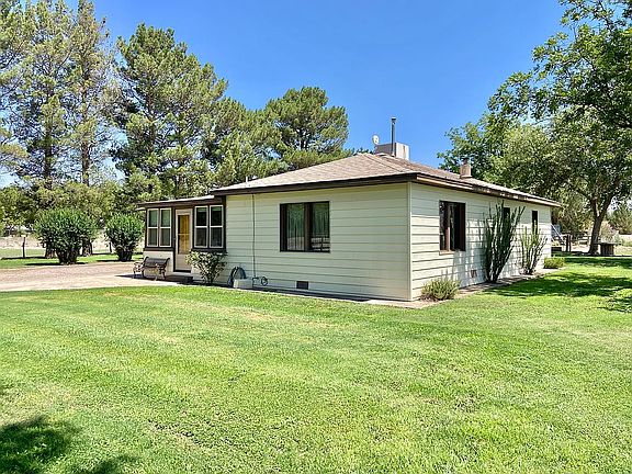 A rare gem nestled in the fertile Hatch Valley — this lovely home on 4 acre farm property with water rights offers peaceful country living, wide open spaces, and picturesque mountain views, all within close proximity to the Village of Hatch. Charming, well maintained 3-bedroom, 1-bathroom home with fully enclosed sunroom features many recent improvements, including flooring (refinished original wood floors throughout; luxury vinyl plank flooring in kitchen, bathroom, 1 bedroom), R.O. water system, new refrigerator, kitchen lighting, and ceiling fans in 2 bedrooms. Enjoy perfect indoor temps through all seasons with recently installed refrigerated air conditioning and heating unit. Detached oversized 1-car garage includes upright freezer and laundry room with washer, dryer, and dedicated water heater. Spacious front and back yards provide a serene setting for gatherings with lush, green grass and a variety of mature trees.