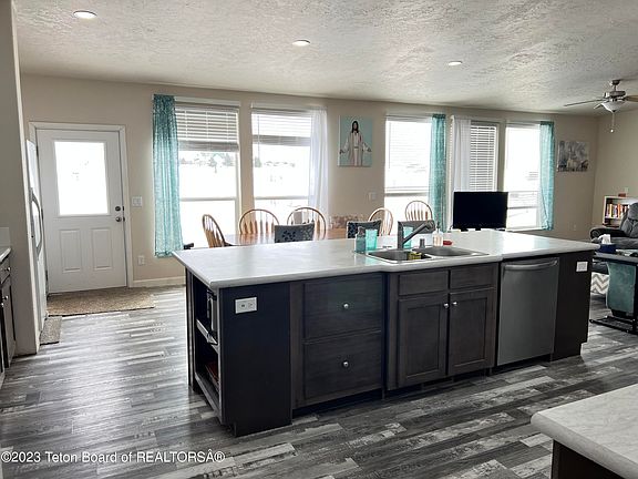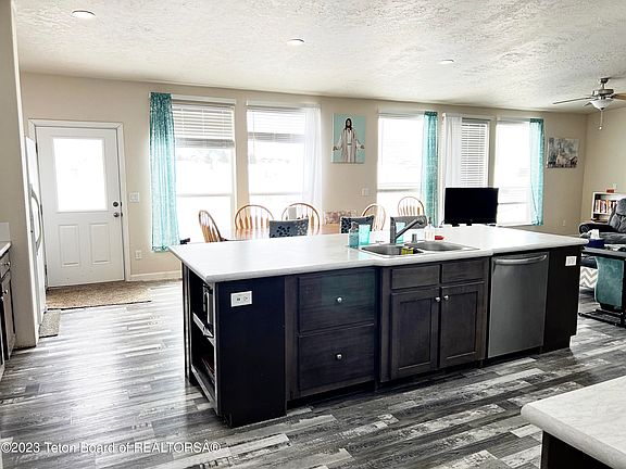 New, modern family home built in 2020 with stunning mountain views on all sides and plenty of room for entertaining with 4000 square feet, 6 bedrooms, and 3 full baths. Large master suite with oversized walk-in closet, double sinks, soaker tub, and shower. Open concept kitchen and living room upstairs with a walk-in coat closet at the front door. Beautiful white cabinets in the kitchen with tons of space, stainless steel appliances, easy clean LVP flooring, and a large pantry. Large family room/rec room downstairs with big 4'x5' windows to let in lots of natural light. 3 bedrooms and 2 full baths upstairs, and 3 bedrooms and 1 full bath downstairs. There are two storage rooms, one fully finished that would make a great play area or small, private office. The home includes a tankless propan water heater for plenty of hot water to fill the soaker tub! Electric furnace heats upstairs and 3 bedrooms downstairs, and there's also a Rinnai propane stove as well as a wood stove in the family room downstairs. Attached, oversized 3 car garage with extra room on the sides, 1180 square feet! Fits 3 cars and an ATV! Cement pad driveway sized for half-court basketball area, and lots of parking space for your RV and all your toys. 16x10 shed in yard for extra storage. 2.06 acre lot with Cottonwood irrigation, no CCR's, and enough room for horses. On a well and septic system. Check out this move-in ready home before it's snatched up!