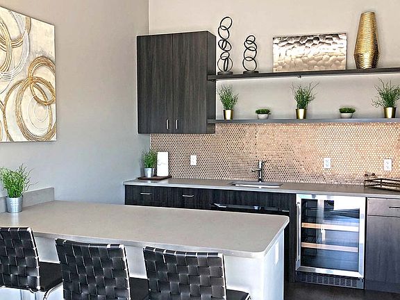 - Exterior features: Barbecue, Bicycle storage, Business Center, Complimentary Premium Coffee Bar, Digital Cafe, Electric Car Charging Stations, Fitness on Demand/Spin Room, Flooring: Wood, Free Weights, High Ceilings, Keyless Entry, Large, Open Floorplans, Night Patrol, On-Site Maintenance, On-Site Management, Outdoor Fitness Space, Pet Washing Station, Plush Carpeting in Bedrooms, Quartz Countertops, Rooftop Entertainment Kitchen, Slate Appliances, Smart Technology Apartments, TV Lounge, Two Tone Cabinets