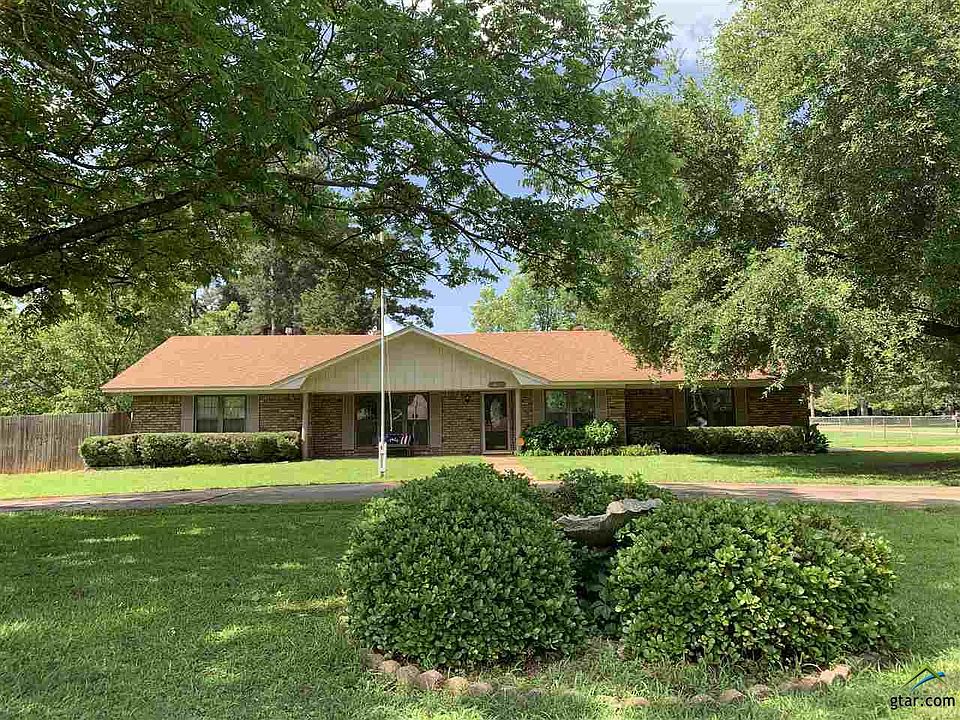 NIIIICE! This 3/2 brick has a gas powered fireplace, separate dining room, oak cabinets in the kitchen with pull out drawers, Corian counter tops, breakfast nook, and a 2 car garage with extra storage. The family room is centrally located with built ins and space for family. The three bedrooms are nice sized with the master being over-sized with a super nice walk-in closet. The master bath has an additional closet. Cool thing is the bathroom has solar powered skylights creating natural light. Out back, the yard is fenced with a lovely covered patio perfect for grilling and chilling. There's a storage building out back with plywood floors convenient for holding yard tools. There's a well for the yard and all your hanging baskets around the patio. There are double paned windows and gutters with French drains in the back to keep the water away from the foundation. This corner lot is in the best spot in Daingerfield.