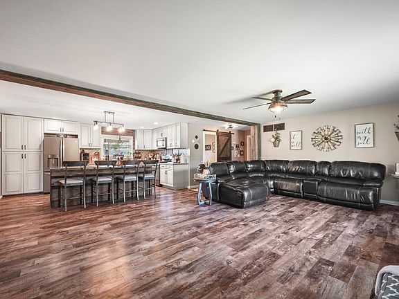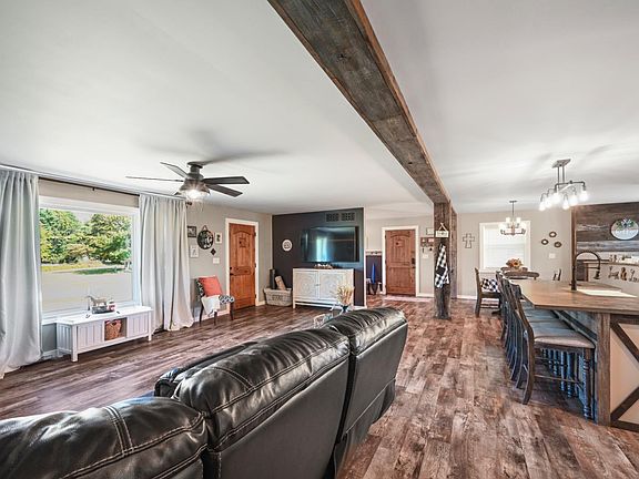 This Bedford stone ranch, fully updated in 2018 sits on 8 acres and offers the perfect blend of modern comfort and country charm. Step inside to an open-concept floor plan ideal for entertaining, with the LR, kitchen, and dining area seamlessly connected. The updated kitchen featured a large island, plenty of storage, and appliances included-gas stove, refrigerator, dishwasher, and microwave. The main level offers two spacious bedrooms, including one with a walk-in closet. The stylish main bath boasts a soaker tub with modern finishes. The finished basement provides even more living space with a 3rd BR, a second full bath featuring both a soaker tub and tiled shower, and a 35x21 family/recreation room with a stone fireplace and walkout patio access. Outdoors you will find multiple outbuildings to suit a variety of needs, 50x40 barn with prior horse stalls, 30 amp plug, and 100 amp service, 30x40 building, and 20x20 with a loft. Sits far enough out of town but yet close for convenience.