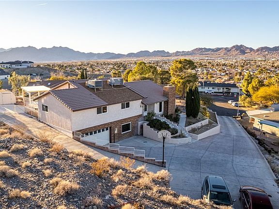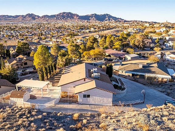 Nestled at the top of a private sprawling 0.670-acre lot, with NO HOA, this home offers the perfect blend of privacy, charm, and breathtaking views of Boulder City and the surrounding mountains. Featuring 4 bedrooms, 2.5 baths and a spacious layout, freshly painted and boasts beautiful wood flooring throughout the main areas, with cozy carpeting in the bedrooms and walk-in closets. The heart of the home is the expansive great room, complete with a wood-burning fireplace, a charming window seat to take in the stunning views.