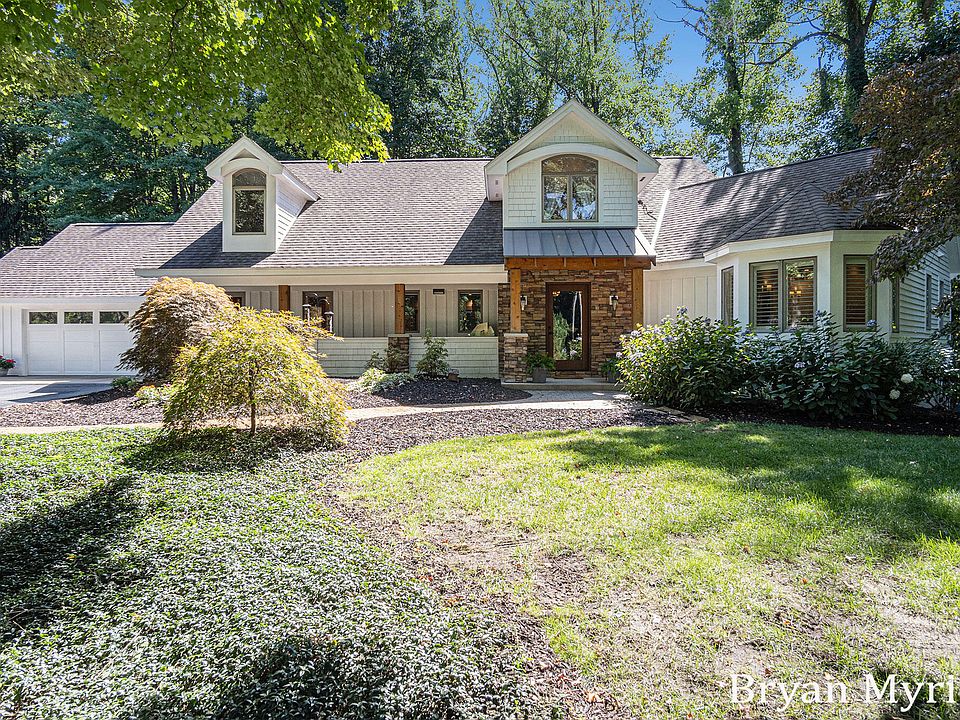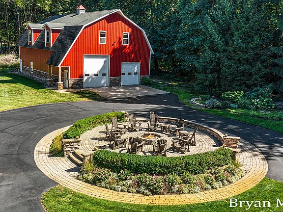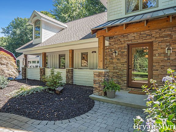 This Incredible Executive home in Laketown township steals the show with its high end finishes, one of a kind setting and well thought out floor plan. Three miles from downtown and 2 miles from Lake Michigan, it is situated on over 3 Acres with a splittable lot, just blocks away from Lake Macatawa, this location is second to none. The quality of the home is felt as you walk in through the high grade doors and view the open concept gourmet kitchen with upper end custom cabinets with crown molding, solid surface granite countertops, multi-functional kitchen island, Viking and Miele appliances, tile backsplash and stone column accents. The 1.5 hardwood floors run throughout the kitchen, elegant dining room, separate butlers pantry with incredible storage, and 1/2 bathroom. The main floor laundry brings tile floors and circles around to the 3 season room and private deck with composite decking looking over the backyard and creek running through the property. The expansive Master suite is its own separate wing with vaulted ceilings, access to private deck, large walk in closet, and a well appointed bathroom with tile floors, dual sinks, custom stone accents, soaking tub and walk in tile shower. The upper level brings two beautiful bedrooms featuring their own private bathrooms, all high end finishes with tile floors, granite countertops and ample closet space. As you walk the extremely private grounds surrounded by hard woods and creek that runs through the backyard, you pass the raised firepit with all brick patio surround and more stone accents and head towards the one of kind outbuilding! This 40x60 barn features all liner panel walls, radiant heat, fully insulated, airlines throughout, trench floor drains, 3 large overhead doors and could be used as a home based business, storage for your toys or a shop to get all your projects done. The main floor of the barn is fantastic, but dont forget about the fully finished upstairs with 1,300 square feet of finished living space that includes a huge bedroom, full bathroom, kitchen, living room, recreation room, additional office and loads of storage.