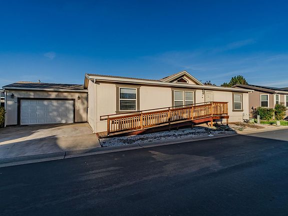 Charming 3-Bed, 2-Bath Manufactured Home with a partial garage conversion built in 2004. Welcome to this beautiful home located in Castle Village Mobile Home Park, conveniently located across from the clubhouse, pool, and mailboxes. Appliances are two years old and will stay, (front load washer, dryer, refrigerator, gas stove and dish washer). Enjoy peace of mind with the new roof (2024), with new gutters with leaf guard protection, drain pipes, and new flooring. The home's recently built ramp is ADA accessible. This home also features a garage conversion, creating a workshop, storage and additional room perfect for 4th bedroom, home office, craft space, or guest room. The garage workshop offers plenty of space for tools, projects, and storage. Step outside to a spacious covered deck which offers outdoor living space just off the dining area. With a fully fenced backyard with new sod and an automatic sprinkler and drip system, it is a true retreat! It features an additional concrete patio area, ideal for relaxing, BBQ'ing and entertaining. Full Pest Report with Clearance Available. This property combines comfort, convenience, and functionality in a friendly community setting. Don't miss your chance to make this beautiful Ione home yours!