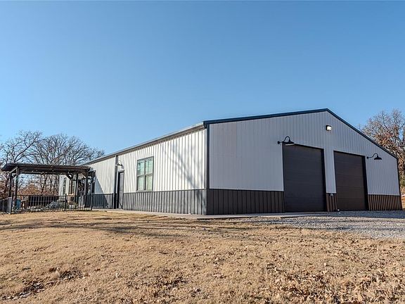 Discover the perfect blend of privacy, space, and modern country living. This beautifully kept property is minutes from Noble and a short drive to Norman. Set on a peaceful and wooded 10 acres, south of Lake Thunderbird. Drive down the private drive and enter on the beautiful porch with a covered pergola! At 2,500 sqft and 4 bedrooms, there is plenty of room to grow and great for hosting within the open concept living area. Several wonderful upgrades at this beautiful metal home, that was newly built in 2022. Granite countertops, stainless steel electric appliances, concrete flooring, and raised ceilings. The house is very efficient with spray foam insulation that covers the house and the 1,500 sqft garage. Included on the property is a 20'x20' greenhouse that includes water and electric. There is additional storage with a 40ft shipping container already on the property. Don't miss out on this great rural home on land! Schedule your private showing today to see this great property in person!