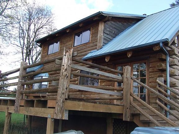 Oregon City Forclosure Log Home on 20 acres with out buildings, seller is offering 2 year Home warranty on owner occupied offers. Near Stone creek Golf Course.