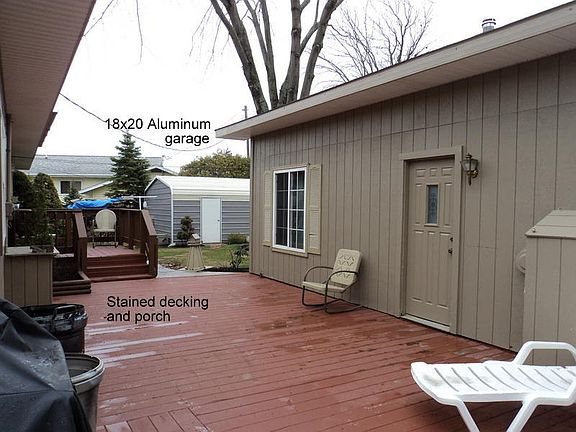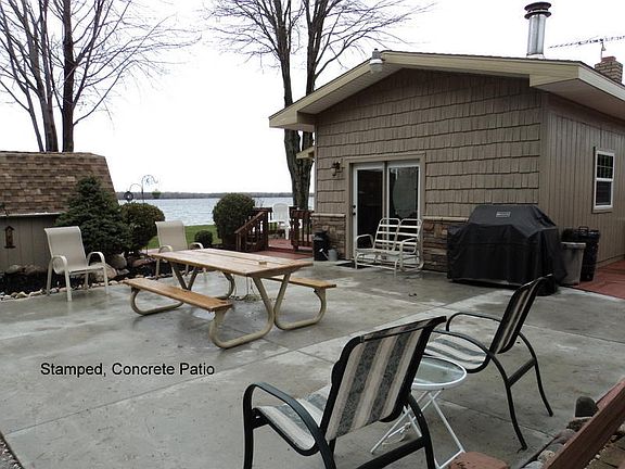 Awesome Location, private setting at end of road, landscaped & 97.8' Long Lake Frontage, w/DNR landing nearby! Upgrades since 94 include kitchen addition w/skylights, island & 1 yr old stainless appliances; family room, floorings, remodeled 3/4 bath, vinyl cedar shake siding w/stacked stone facings, insulation & more. 24x32 garage w/mancave workshop & insul. storage/bunk room. 2nd 18x20 garage has room for toys. Seller has thought of it all: stamped concrete patio, spacious decking, lake pump sprinkler system. Where the road ends he's taken advantage of a little extra waterfrontage!