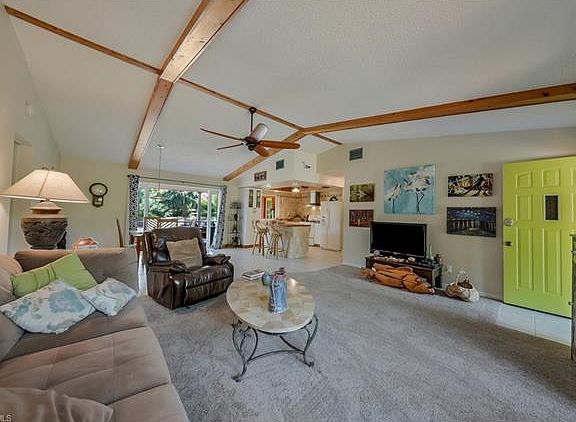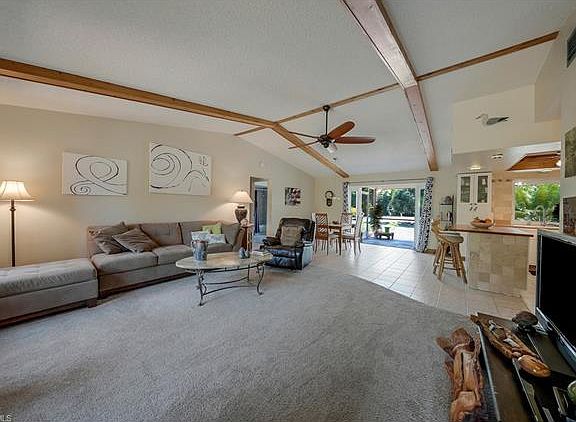 Property Sold by: Andrew Darda /The Darda Group / Century 21 Sunbelt 239.849.3883 / andrewdarda@gmail.com Remodeled and updated 2 bedroom, 2 bathroom, 2 car garage home located on a 2 acre private setting. Large open feeling throughout starting with the living room featuring high cathedral ceilings with wood beams. Open concept kitchen and island has been updated, and has backsplash, butcher block counter, gas range, and tray ceiling. Two very large bedrooms, both are master bedroom size and have walk in closets. Master bedroom and bath are gorgeous-the virtually new bathroom has walk-in closet, custom wood ceiling, tile with inlays, and rain shower. Large guest bedroom features a work / office area, along with its own walk-in closet. Big screened in lanai overlooks the peaceful setting out back with slate tile floors overlooking the trees and palms... no neighbors in sight! The ultimate bird watcher and nature lover's paradise! Private pond in front and land in back make this the ideal private location. Storage shed for toys and tools, painted to match the home. All located minutes from Boating and Golf! Near Pineland Marina, The Tarpon Lodge, Alden Pines Golf Course, boat ramps, and dining. Seller just installed new a/c with 10 yr warranty and new screens.