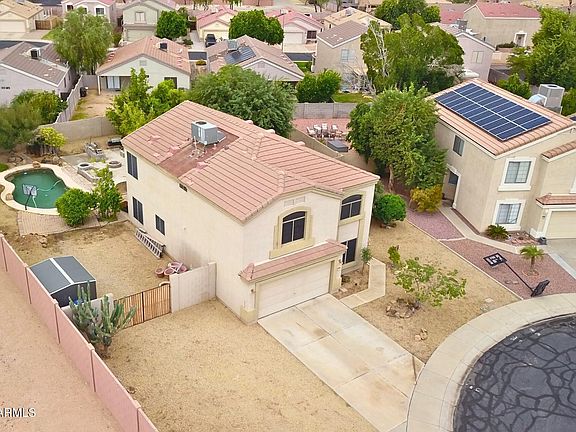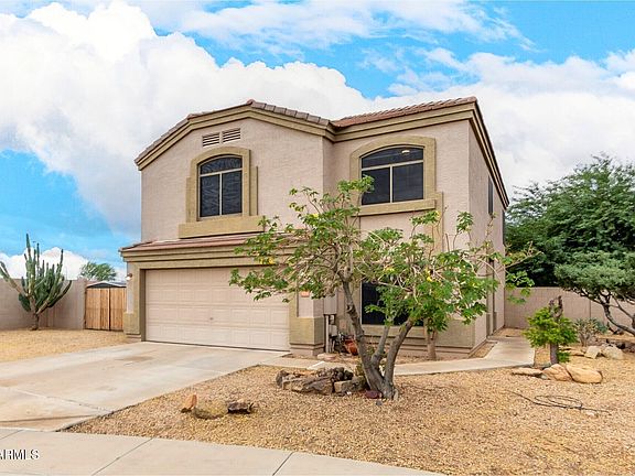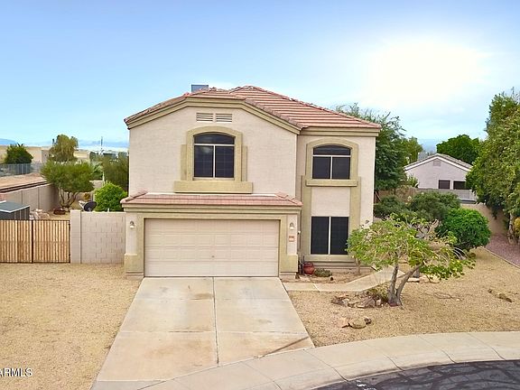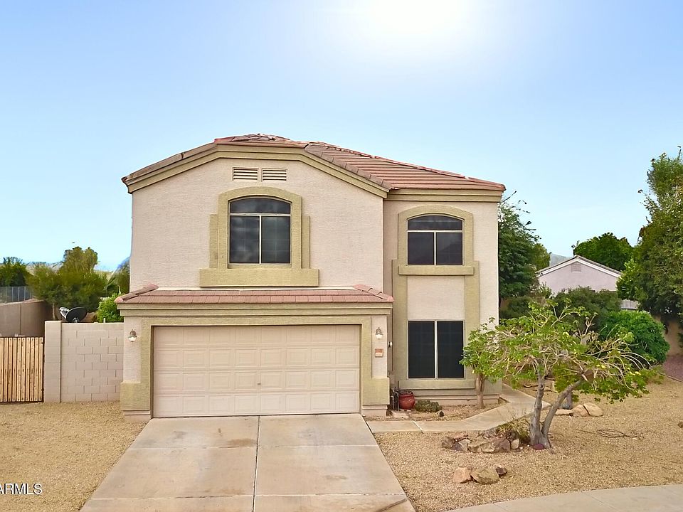 Looking for a big home with a pool in a cul-de-sac in El Mirage - this is the one! This beautiful, freshly painted home features 3 bedrooms, an office/den, a large upstairs loft, 2.5 bathrooms, and 2,178 sq ft of living space. Enjoy the lovely kitchen, featuring an entertaining breakfast bar that connects to a large dining area and flows seamlessly into the family room. The upstairs loft is perfect for a game room, movie room, or second living space. The 11,763 sq ft lot is a true backyard retreat with a sparkling pool, flagstone accents, playground area, RV gate, and west-facing views for stunning Arizona sunsets. This home offers easy access to parks, schools, shopping, dining, and major freeways. Don't miss your chance to make this beautiful, move-in-ready home yours today!