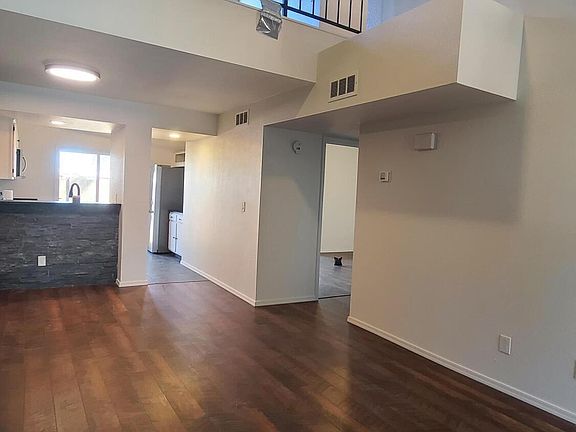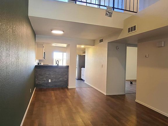 Brand new remodel! Beautiful brown wood slat vinyl flooring. Enhanced modern fire place in living room. Vaulted ceilings. Stainless appliances, newly painted cabinets and countertops. Bath has upgraded bathroom mirror and light fixtures. Modern light fixtures and replaced electrical outlets. Fresh calming color palate throughout the home. Upstairs features spacious loft and large custom office and storage space. Property encompasses private garage, washer & dryer, community pool and greenbelt