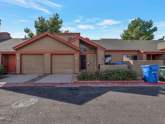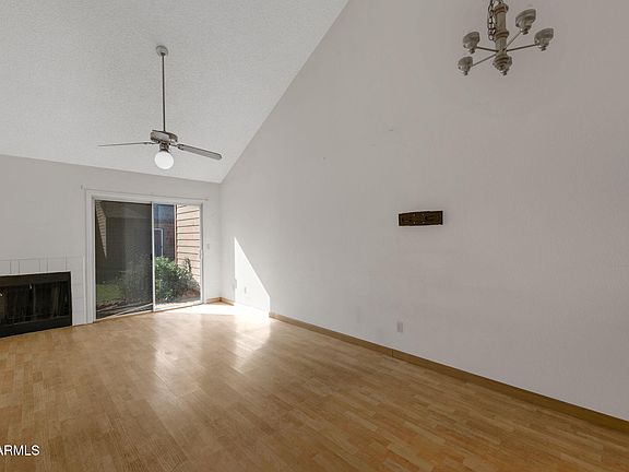 Highly sought-after townhouse in a prime location! This well-kept community offers beautifully maintained grounds and a refreshing pool. The home features one bedroom downstairs and one upstairs, with an open and inviting interior that boasts a spacious great room, soaring vaulted ceilings, wood-look flooring, carpet, and a charming fireplace. Just a short walk to ASU West Campus and close to shopping, dining, and freeway access. Home is being sold as-is.