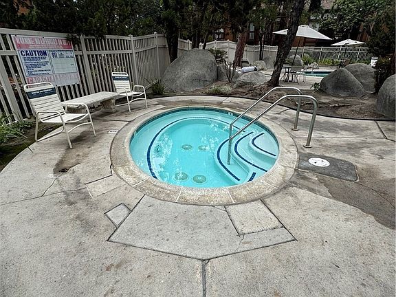Community amenities include a pool, spa, gym and tennis courts.
