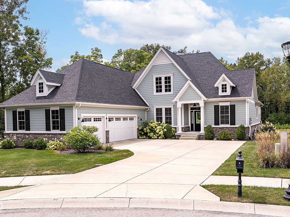 Stunning 4BR/4.5BA Ranch in Grannan Grove! Nestled on quiet .41-acre cul-de-sac lot, this custom-built "Garfield" spec home by Wedgewood Builders (2018) combines luxury & comfort in every detail. Step inside from the covered front porch to soaring 10' ceilings & 8' doors throughout. Open layout features Den/Library, Great Rm w/ gas-start WB fireplace & built-in shelving, & Gourmet Kitchen w/ center island/breakfast bar, Bosch SS appliances, walk-in pantry, & adjoining Dining Rm w/ access to covered patio. Primary Suite offers tray ceiling, private patio access, dual sinks, full shower stall, WIC, & direct access to Laundry Rm. BRs 2 & 3 each include their own ensuite baths. Finished lower level provides spacious Rec/Play Rm w/ wet bar, Home Theatre, 4th BR, full bath, & spacious storage room. Outdoor living shines w/ 15x13 covered patio overlooking serene pond w/ wooded privacy. Wildlife, fishing, and gorgeous west-facing sunsets make the setting truly special. Gas line conveniently located on the patio for outdoor grill hook-up, w/ an additional line in place for future fireplace. Additional features include a 3-car finished garage with epoxy flooring and attic access. Move in and make this incredible home yours!