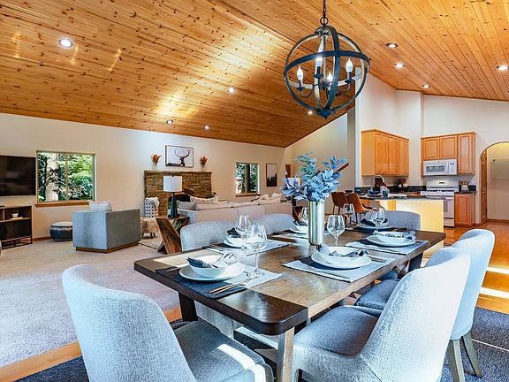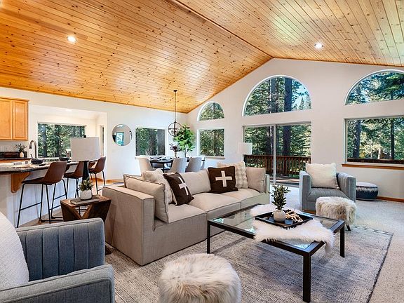Set on a level lot along the 16th fairway of the Tahoe Donner Golf Course, this 3-bedroom, 2.5-bathroom home blends comfort, function and a desirable mountain lifestyle. A flat, south-facing driveway ensures easy year-round access, while the golf course setting provides a beautiful backdrop and a true sense of Tahoe living. Inside, the spacious great room welcomes you with vaulted pine ceilings, a gas fireplace with a ledgestone hearth, and an open flow ideal for both gathering and relaxing. Maple cabinets, granite counters, and maple wood floors highlight the kitchen and dining area, creating a warm and inviting space for cooking and entertaining. The primary suite offers dual closets, private deck access, and a flexible office nook—perfect for working remotely or enjoying a quiet retreat. The oversized garage, complete with a half bath, fits up to four cars or can be reconfigured to add a workshop or game room. An airlock entry from the garage, spacious pantry, a separate laundry room and a gas line plumbed to the back deck all add convenience and functionality. Additional under-house storage is easily accessed from inside the home. Beyond the walls, the lifestyle truly shines. Wake up to golf course views, spend afternoons on the sunny decks, or take advantage of Tahoe Donner’s extensive amenities, including a private beach, pools, fitness center, downhill and cross-country skiing, hiking and biking trails, and, of course, championship golf. Whether you’re seeking a full-time residence or a mountain retreat, this home’s unique combination of level access, storage, and location makes it an exceptional opportunity.