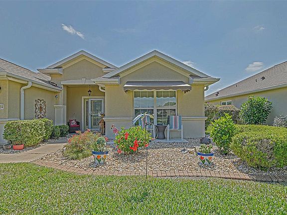 Price improvement !! Wonderful Elkridge model located on a cul-de-sac 3 bedroom and 2 bath open floor plan on a semiprivate serene lot, centrally located in the community. Enclosed lanai is under heat and air for year-round use adding an extra 280 sq ft of living space (not included in heated sq footage ) . Backyard has a fenced area for your pet. Upgraded Maple cabinets with newer appliances. Inside laundry. No carpet in the house, either luxury vinyl laminate or ceramic tile. Roof re-shingled 2021 and HVAC replaced 2019. and so much more! Wonderful home in a superb location.