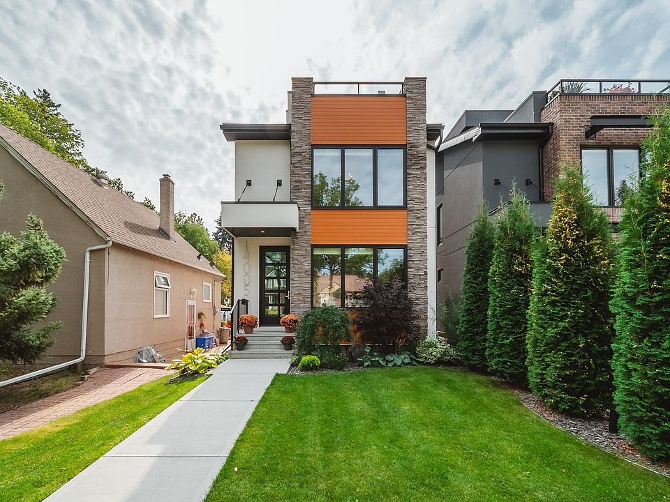 This 2,305 sq. ft. 2.5-storey stunner sits in Edmonton’s most coveted neighbourhood—GLENORA & features a total of 4 beds, 4 full baths & 2 half baths. Designed for modern living, it blends minimalism, comfort, & elegance with striking glass details throughout. The main floor showcases an open layout anchored by a 13-ft quartz island, complemented by a premium stainless steel appliance package. A floor-to-ceiling glass wine wall highlights the dining area, while an open-riser staircase encased in glass adds architectural flair. Upstairs, the primary retreat impresses with sliding glass barn doors leading to a spa-inspired ensuite with freestanding tub & custom shower. Two additional bedrooms, each with ensuites, plus handy same-level laundry complete this floor. The third level offers an urban lounge with seamless access to an indoor/outdoor rooftop patio boasting skyline views. Fully finished basement has rec area & 4th bed/bath. Built in sound + minutes from the River Valley, Ice District, and downtown.