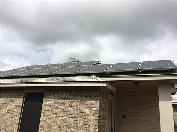 Very nice one story Main Street Home. 3/2 with enclosed patio turned into workshop. Somewhat handicapped enabled with ramps and step in shower. Includes recent solar system that results in sometimes monthly credit on electric bill. Across from neighborhood park and running/biking trails. Quick access to I35 off Howard Lane.
