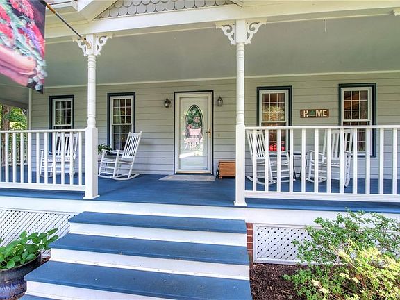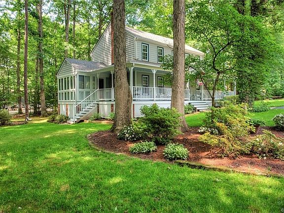 Absolutely beautiful Colonial style home with charming wrap around porch! Large landscaped cul de sac lot with ornamental plantings, stunning lawn, and creek lined side yard gives this home so much character. Meticulously maintained and manicured with a great floor plan! Formal dining room with hardwoods, ceiling fan, and crown molding. Spacious yet cozy family room with hardwoods, wainscoting, ceiling fan, and wood burning stove that anchors the room. Gorgeous sun room with casement windows, ceiling fan and access to family room and porch. Updated kitchen with custom cabinetry, quartz tops, luxury vinyl flooring, pantry, and appliances that convey. Mud room off of kitchen has laundry area with washer and dryer that convey, powder room, and access to deck. Upstairs are 3 large bedrooms - all with hardwood flooring! Master suite has beamed ceilings, walk in closet, ceiling fan, walk up attic access, and private bath with walk in shower. Other features include: NEW ROOF (2018), HVAC (2015), H2O HTR (2014), irrigation, attached shed, deck, paved drive, leaf guard gutters, double pane tilt windows, plantation shutters, surround sound, and window treatments convey.