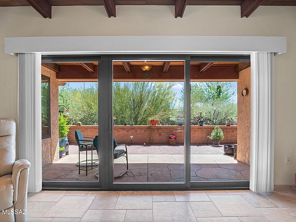 Lush desert landscapingUpdated vanitiesWood-beam ceilingsCatalina mountain viewsPrivate extended patioPlantation shuttersGranite counters