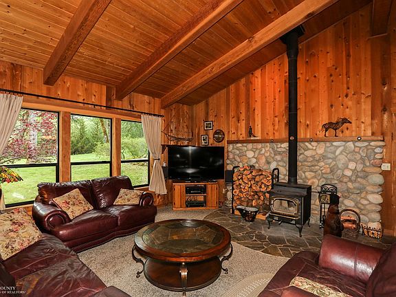 Gentleman's ranch is perfect for those looking for a secluded and private setting with lovely local views. Pretty tree cover and rock outcroppings accentuate this farm style single level home with 3 bedrooms and one and a half baths. The updated kitchen is open to the great room. It has a cabin-feel, warm and homey. There is a detached two-car plus garage with washer/dryer hook-ups and a oversized large RV garage that would accommodate a variety of uses. Fruit trees, pretty grounds, garden area, above-ground pool with decking for those warm summer days.