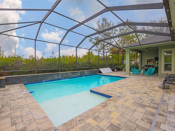 Welcome to this beautifully upgraded ICI-built home, perfectly situated on an oversized corner lot in desirable FishHawk West. This spacious 4-bedroom, 3.5-bath home offers a dedicated office, an upstairs bonus room, and a sparkling saltwater pool, creating the ideal blend of luxury, comfort, and modern functionality. A soaring two-story foyer welcomes you inside, leading to a freshly repainted private study with French doors and refinished wood flooring. The large formal dining room provides an inviting space for gatherings and is accented by an updated designer chandelier. The open great room flows seamlessly into the gourmet kitchen, making everyday living and entertaining effortless. The chef’s kitchen features a large island with a farmhouse sink, gas cooktop with hood, stainless steel appliances, granite countertops, subway tile backsplash, walk-in pantry with roll-out shelving, built-in wine fridge, and a convenient instant hot water feature at the kitchen sink. A bright breakfast nook overlooks the screened lanai and pool. The first-floor primary suite is a peaceful retreat with plentiful natural light and pool views. The spa-inspired bath includes dual vanities, a freestanding soaking tub, and an oversized walk-in master shower with custom tile. Dual walk-in closets with built-in organization provide excellent storage. Upstairs, all secondary bedrooms include walk-in closets, with two connected by a Jack-and-Jill bath. The home also features three upgraded Japanese-style toilets, upgraded LED lighting throughout, newly installed carpeting (2025), and additional recessed lighting in the secondary bedrooms. The versatile upstairs bonus room includes built-in shelving and a Murphy bed—ideal for guests, a game room, or media space. Step outside to your private oasis with a screened lanai, saltwater pool, brick-paver patio, and a gas hookup for an outdoor grill—perfect for Florida living. The 3-car garage offers epoxy flooring, overhead LED bar lighting, and an electric car charging port. The home also includes solar panels designed to enhance energy efficiency. FishHawk West residents enjoy resort-style amenities including pools, fitness centers, parks, playgrounds, miles of trails, and the picturesque Lake House. Zoned for top-rated schools with the elementary and middle schools located within the community, this home delivers luxury, convenience, and an exceptional lifestyle.