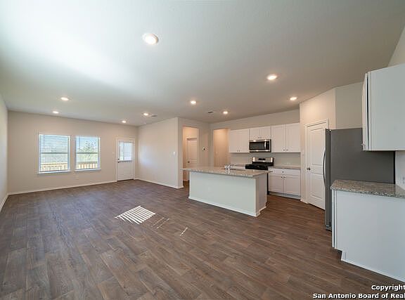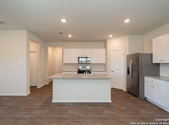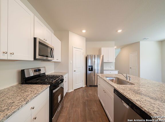 Introducing The Madison, a two-story home featured in Riverstone at Westpointe in San Antonio, TX. This floor plan offers 2 classic exteriors, 2-car garage, and a full yard landscaping and irrigation package, ensuring that your home looks its best every single day. Inside this 5 bedroom, 3 bathroom home, you'll find 2489 square feet of open-concept living. A long entryway leads to a blended dining area, gourmet kitchen, and living room, perfect for entertaining and every day living. Your kitchen includes granite counter tops, stainless steel appliances, shaker style cabinetry, and a grand kitchen island, complete with a roomy single basin sink and granite breakfast bar. The corner pantry is spacious and includes plenty of built-in shelving. With a secondary bedroom and full bath located off the living room, this home offers private space for out-of-town guests. Head up the wide staircase to find a versatile loft, the private main bedroom suite, three secluded secondary bedrooms with carpet flooring, large windows and closets and a third full bath. The private main bedroom is an oasis, featuring a cozy sitting area and attractive ensuite bathroom. Enjoy quality granite vanity tops, a tiled walk-in shower, a separate water closet, and a walk-in closet with plenty of space to get ready in the morning. Additional features include sheet vinyl flooring in entry, living room, and all wet areas, granite bathroom counter tops, and our HOME IS CONNECTED base package. Using one central hub that talks to all the devices in your home, you can control the lights, thermostat and locks, all from your cellular device.